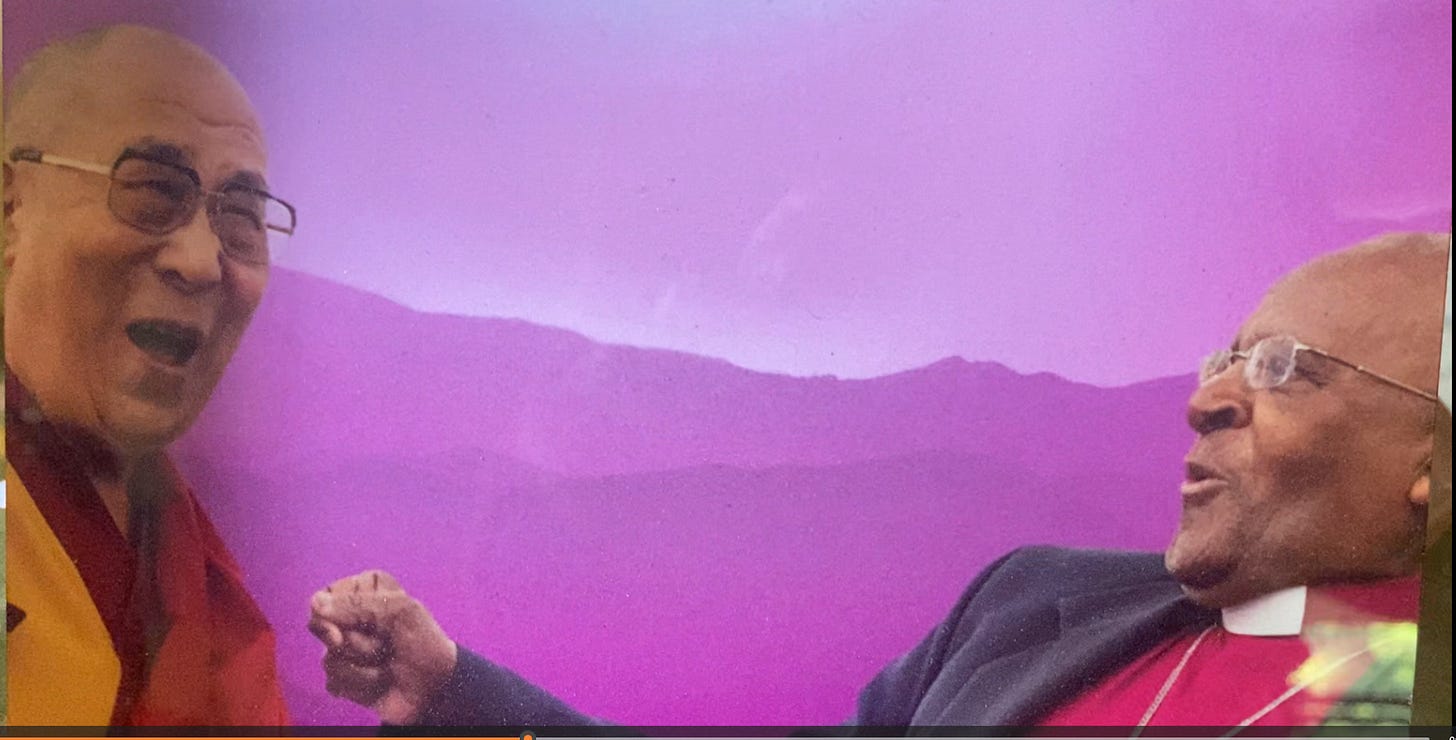 And they all put on their pants (okay His Holiness, his briefs) one leg at a time. Like us. And so I put them on my altar. In the midst of my outrage, my despair, I bow to their courage, their equanimity. I thank them for their example. Their unfiltered humanity. And still, I doubt: “How DID You Do This?” You witnessed, experienced, torture, depravity, lost your country, (it has happened before). And yet you continued to live with fullness, appreciation, hope. Really, is this possible? Here and Now?